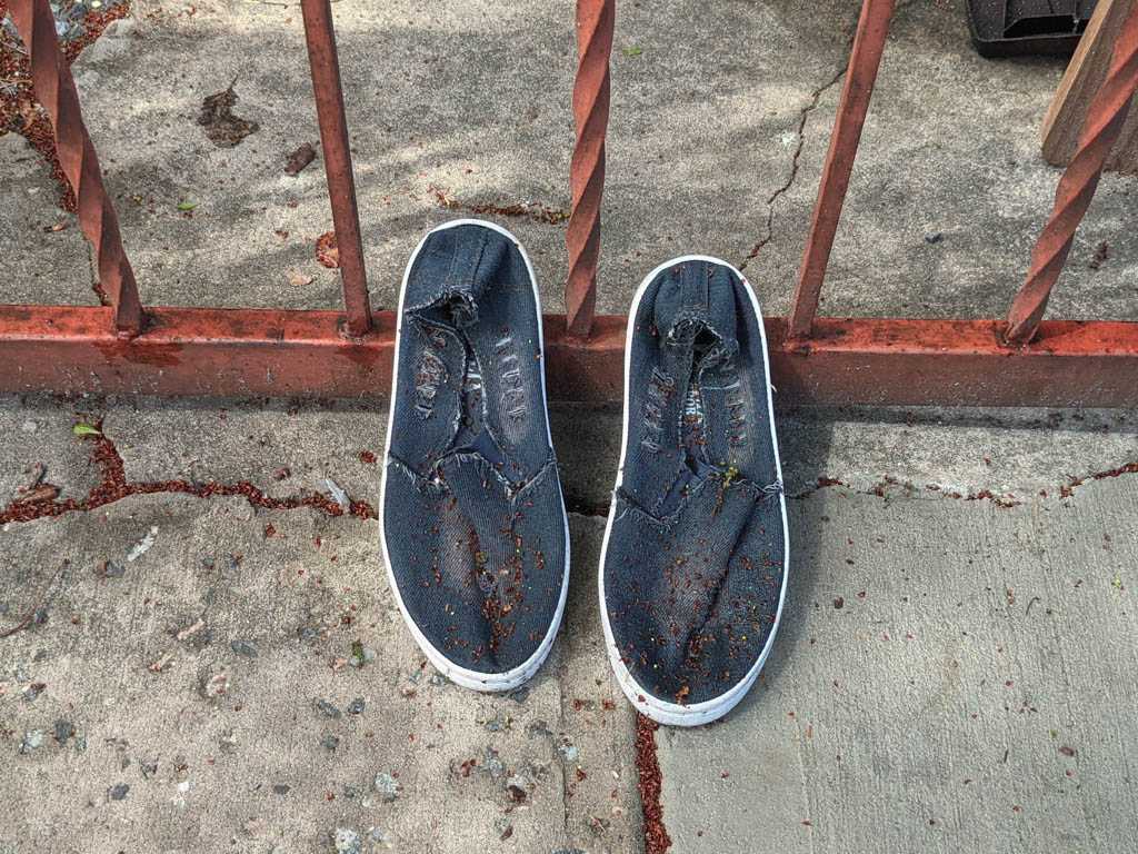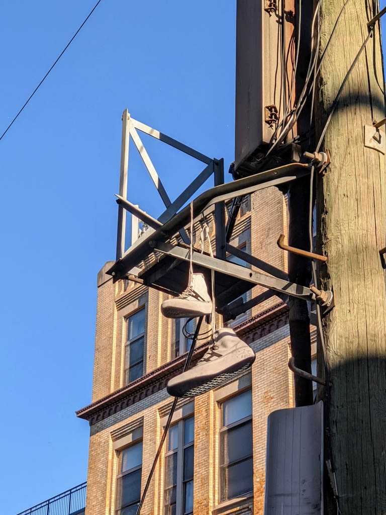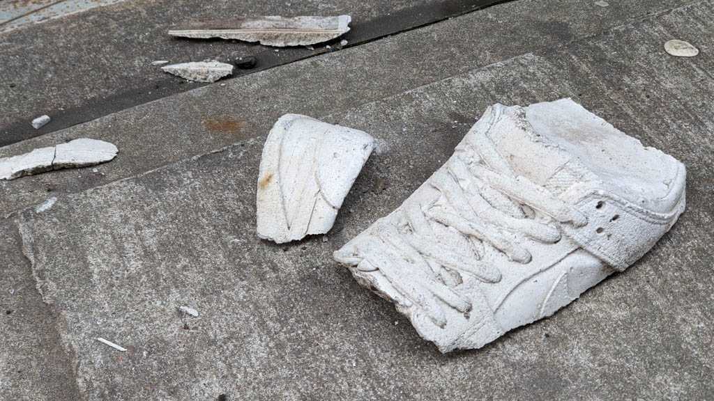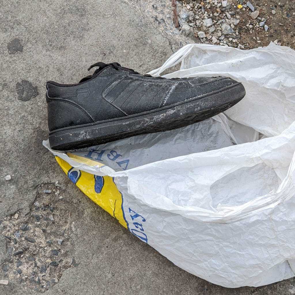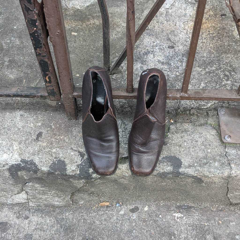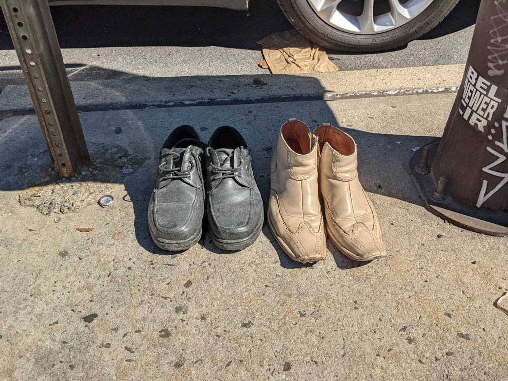 I notice shoes fairly often, and when I see an abandoned pair, or, more often, a single, I always take a moment to imagine how it might have ended up there. This is my collection of discarded shoe photos.